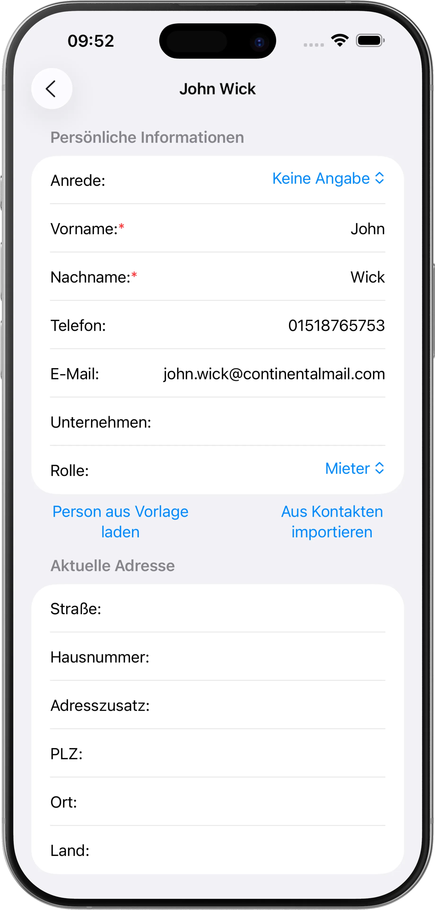 • Personentemplates – Standarddaten für wiederkehrende Vermieter oder Handwerker